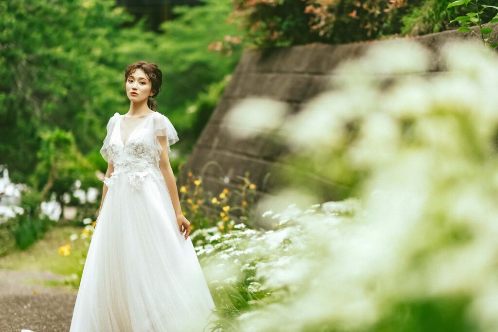 「写真は撮りたいけれど、着たいドレスがない…」そんな妥協はもう必要ありません。数百着のラインナップから、あなたのシルエットを最も美しく見せる一着を。衣装のプロが、ヘアメイク・撮影場所までトータルコーディネートします。